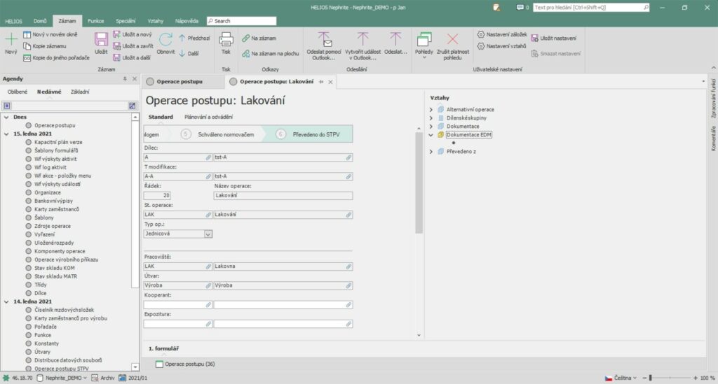 ERP Helios tedy přesně sleduje a eviduje v jaké fázi výrobního procesu se daná deska nachází, což výrazně zrychluje orientaci o stavu zakázky ve výrobě.